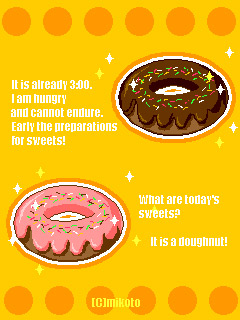 ドーナツがお気に入りだったので、 待ち受けも作っちゃいましたー♪ どうすかねぇ? jpg形式はコチラ